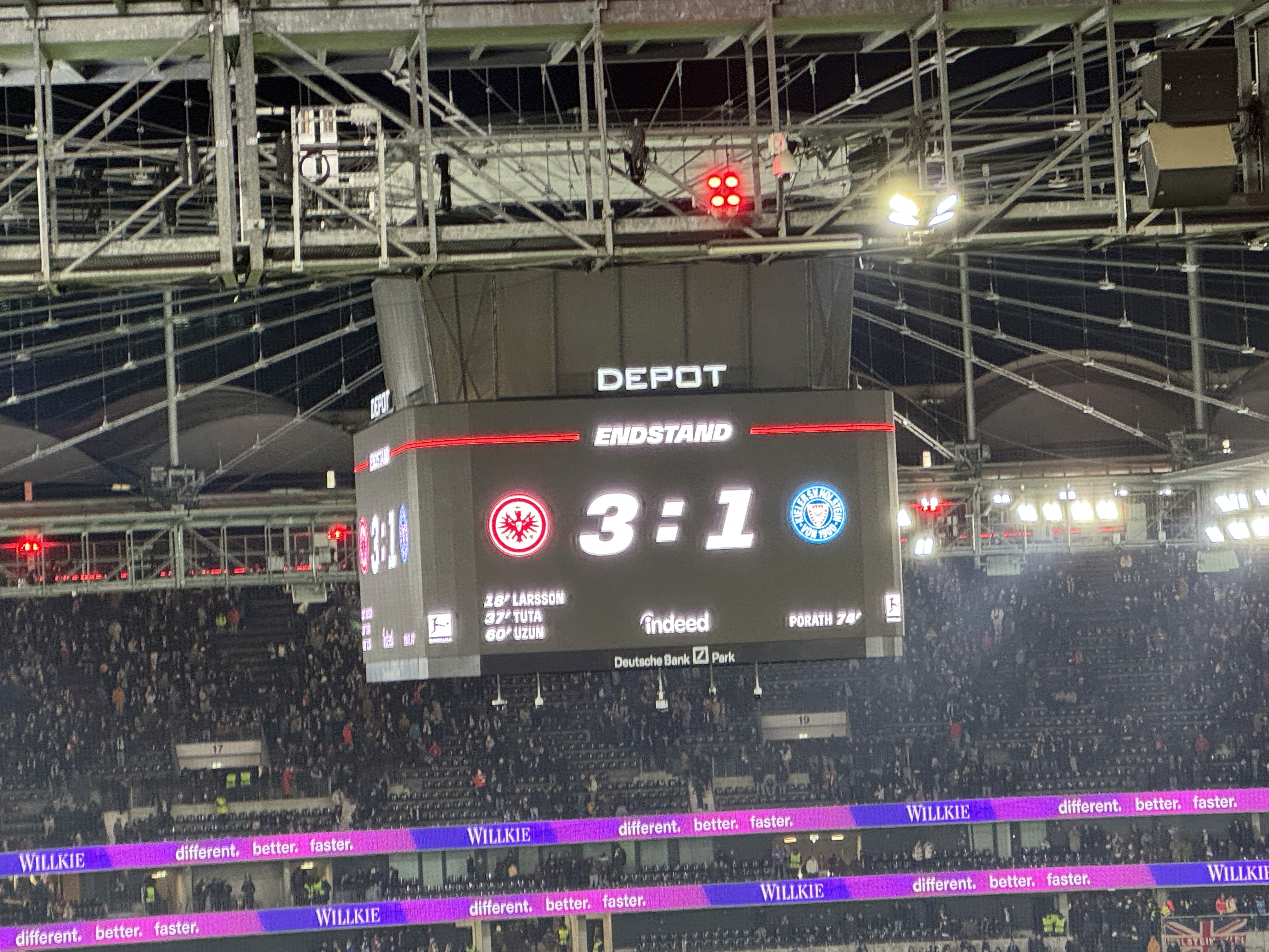 Den Gegentreffer von Finn Porath in der 73. Spielminute konnten die Adlerträger, die über die gesamte Spielzeit das dominierende Team waren, dann auch problemlos verkraften. Ebenso wie den verschossenen Handelfmeter von Hugo Eketiké in der 45. Spielminute. Eintracht Frankfurt festigte mit seinem Sieg über das Tabellenschlusslicht Holstein Kiel seinen dritten Platz in der Tabelle und liegt jetzt mit 42 Punkten fünf Zähler hinter dem Tabellenzweiten Bayer Leverkusen (47 Punkte), aber auch fünf Punkte vor dem Vierten RB Leipzig (37 Punkte). Auf Tabellenrang fünf und sechs folgen dann der SC Freiburg (36 Punkte) sowie der VfB Stuttgart mit 35 Zählern. Damit sind die Hessen gut im Rennen um die Champions-League-Plätze.