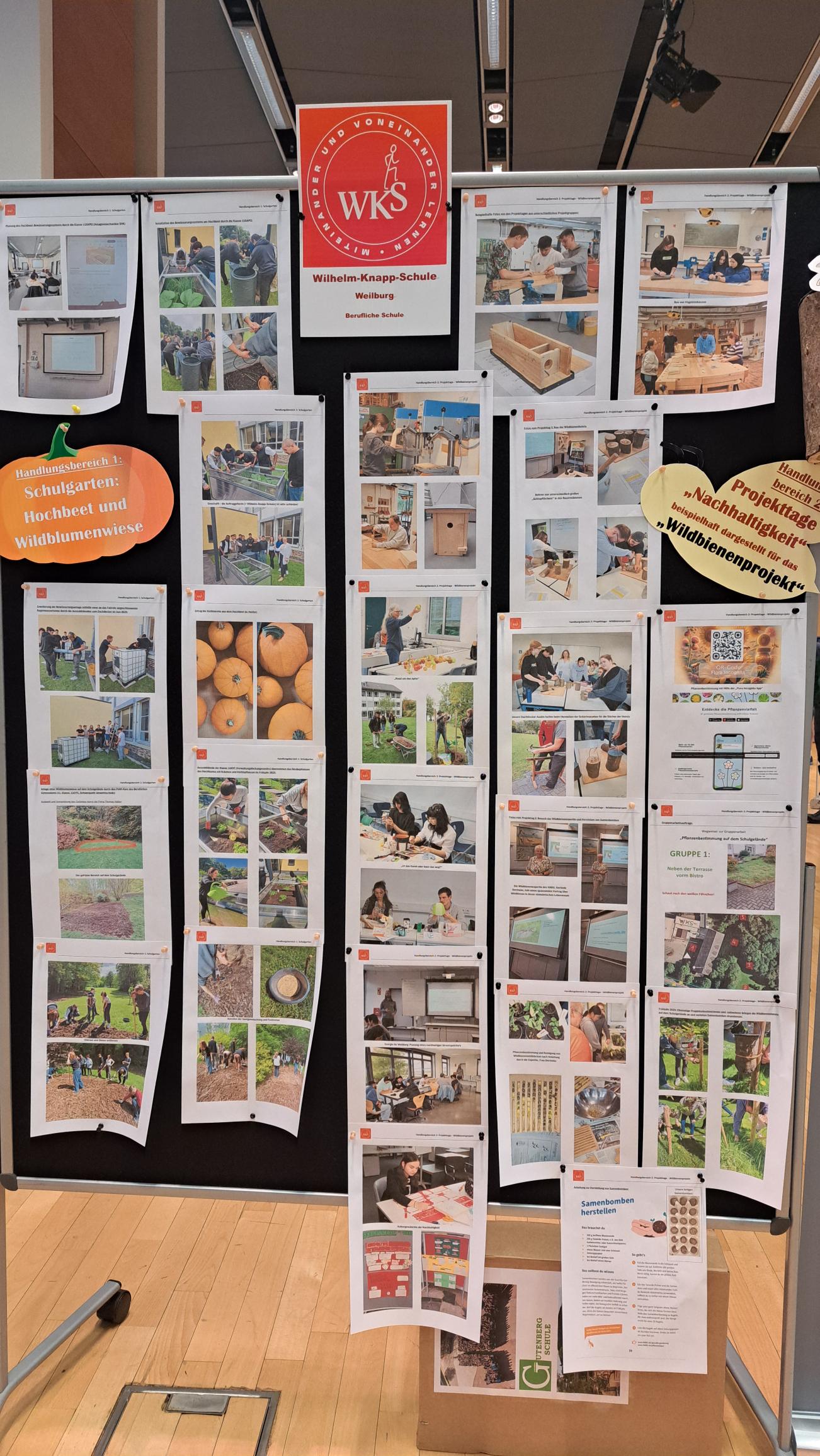 Im Handlungsbereich II „Projekttage „Nachhaltigkeit“ an der Wilhelm-Knapp-Schule, beispielhaft dargestellt für das Wildbienenprojekt“ wurden an der WKS vom 30.09.-02.10.2024 die „Nachhaltigkeitsprojekttage“ der gesamten Schule durchgeführt. Dabei wählten sich alle Schülerinnen und Schüler in verschiedene klassen- und schulformübergreifende Projekte ein.